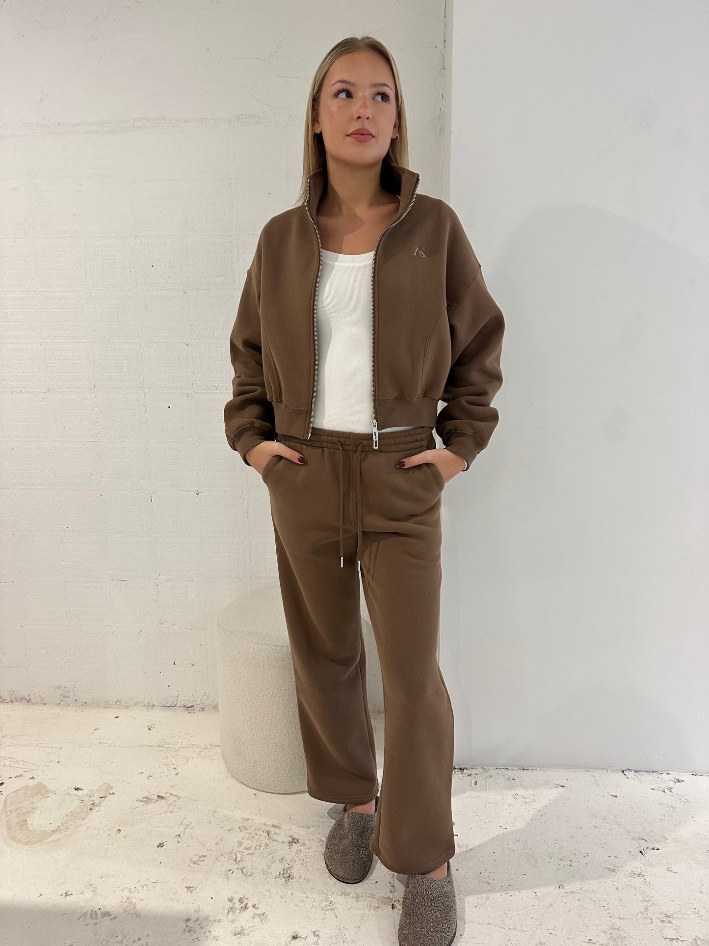 Fleece Straight Leg Track Pant Chocolate