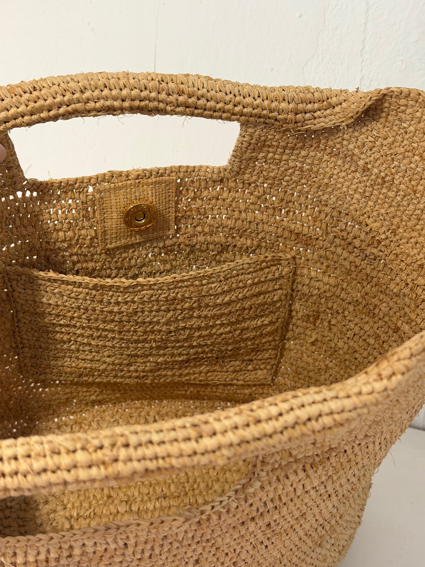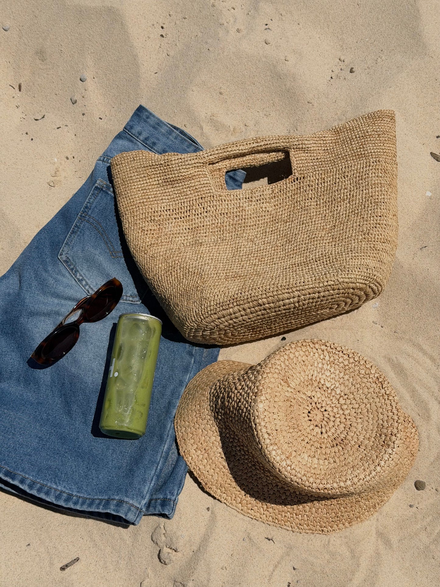 A handwoven natural raffia tote designed for effortless everyday wear. Lightweight, durable and finished with practical details, it’s the perfect grab-and-go bag for beach days, markets or daily errands.