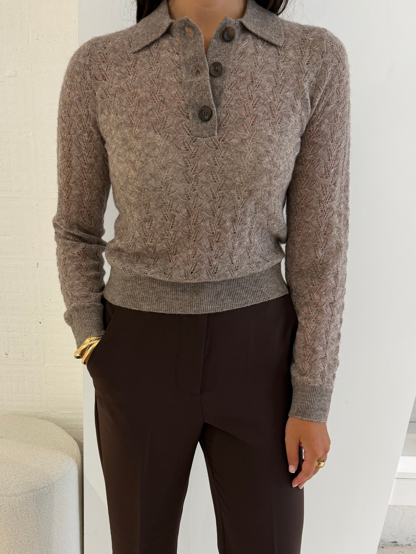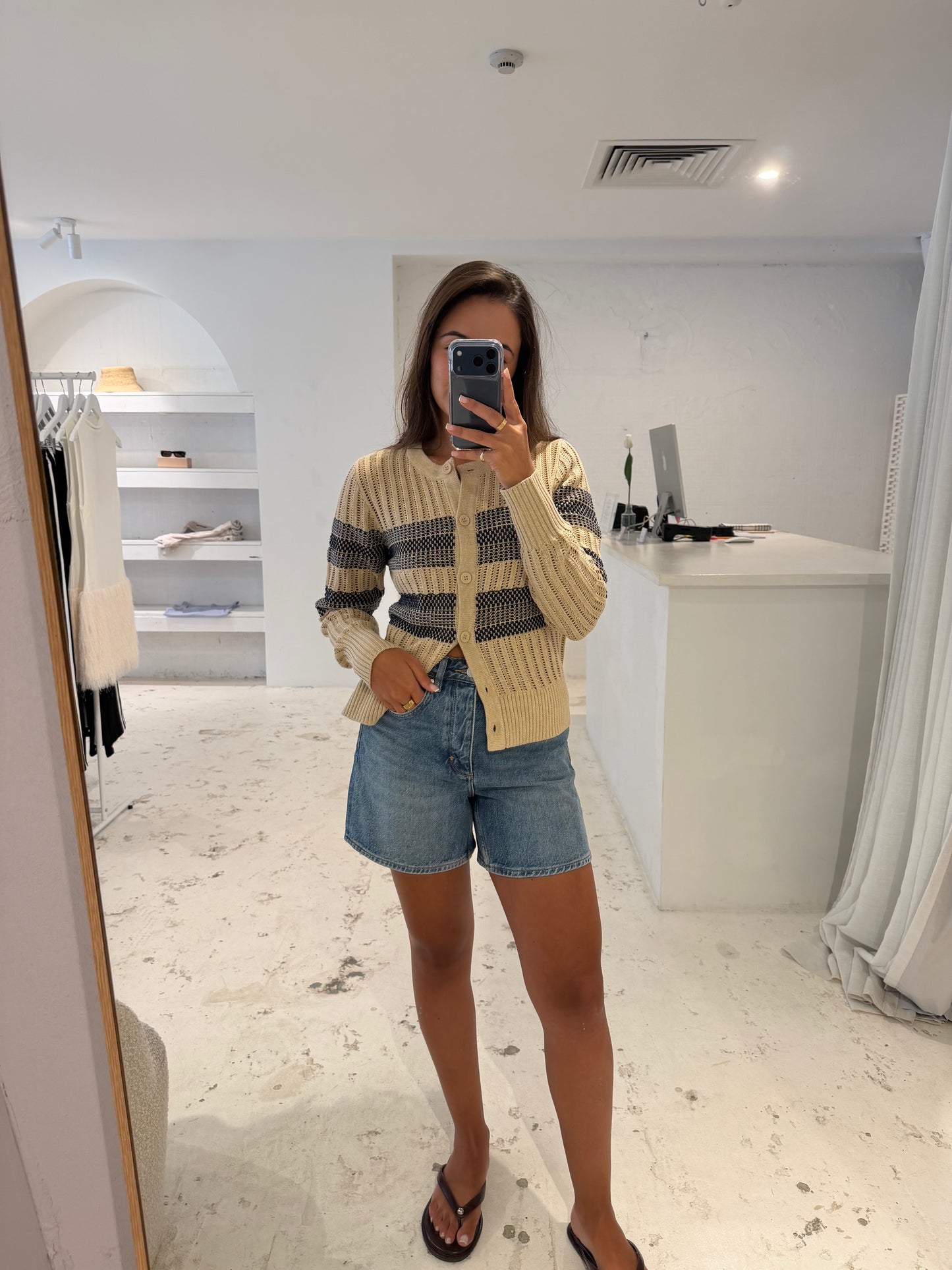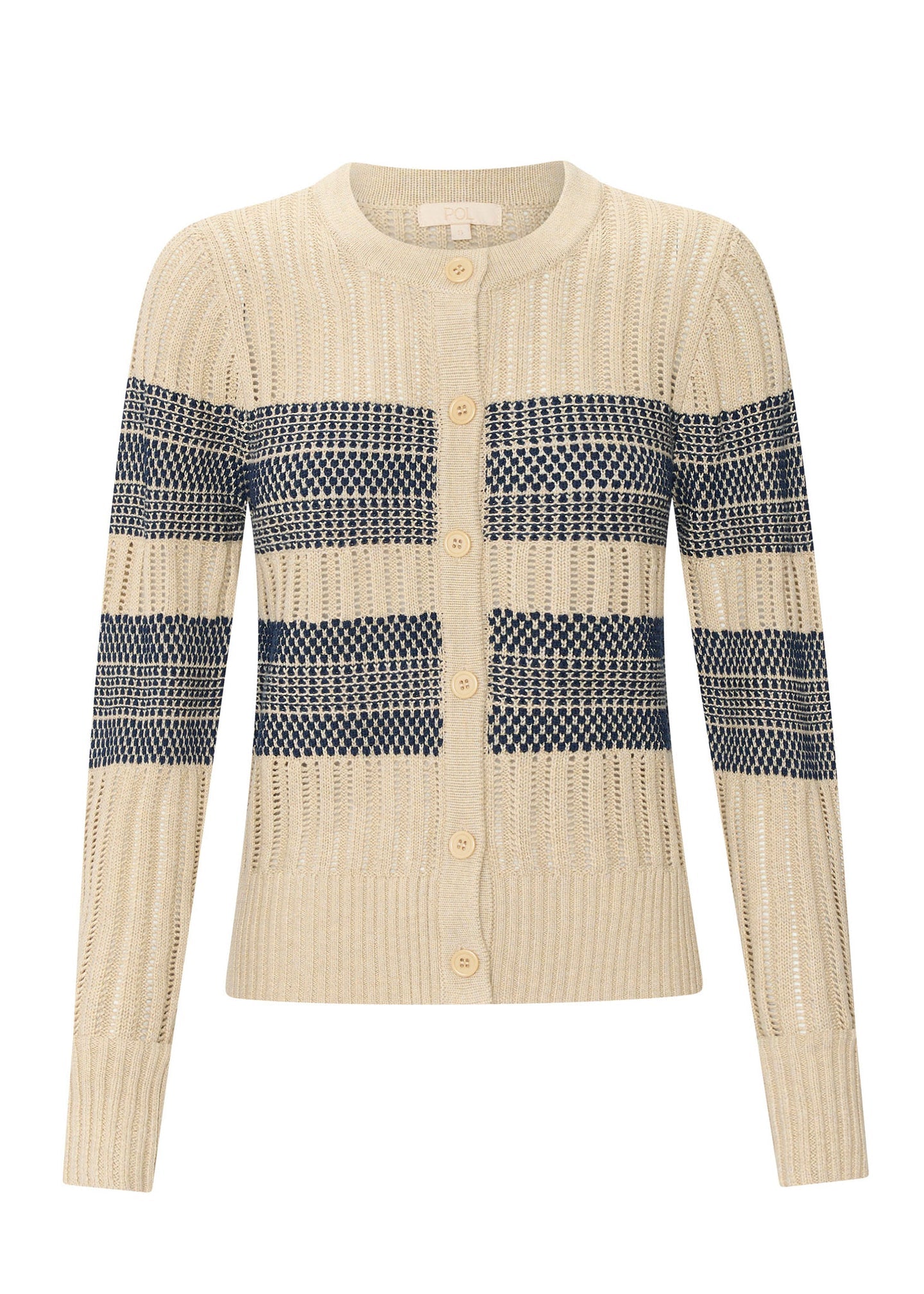 POL Clothing Sable Striped Cardigan - Pebble/Ink