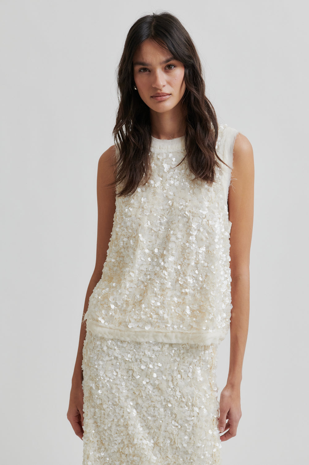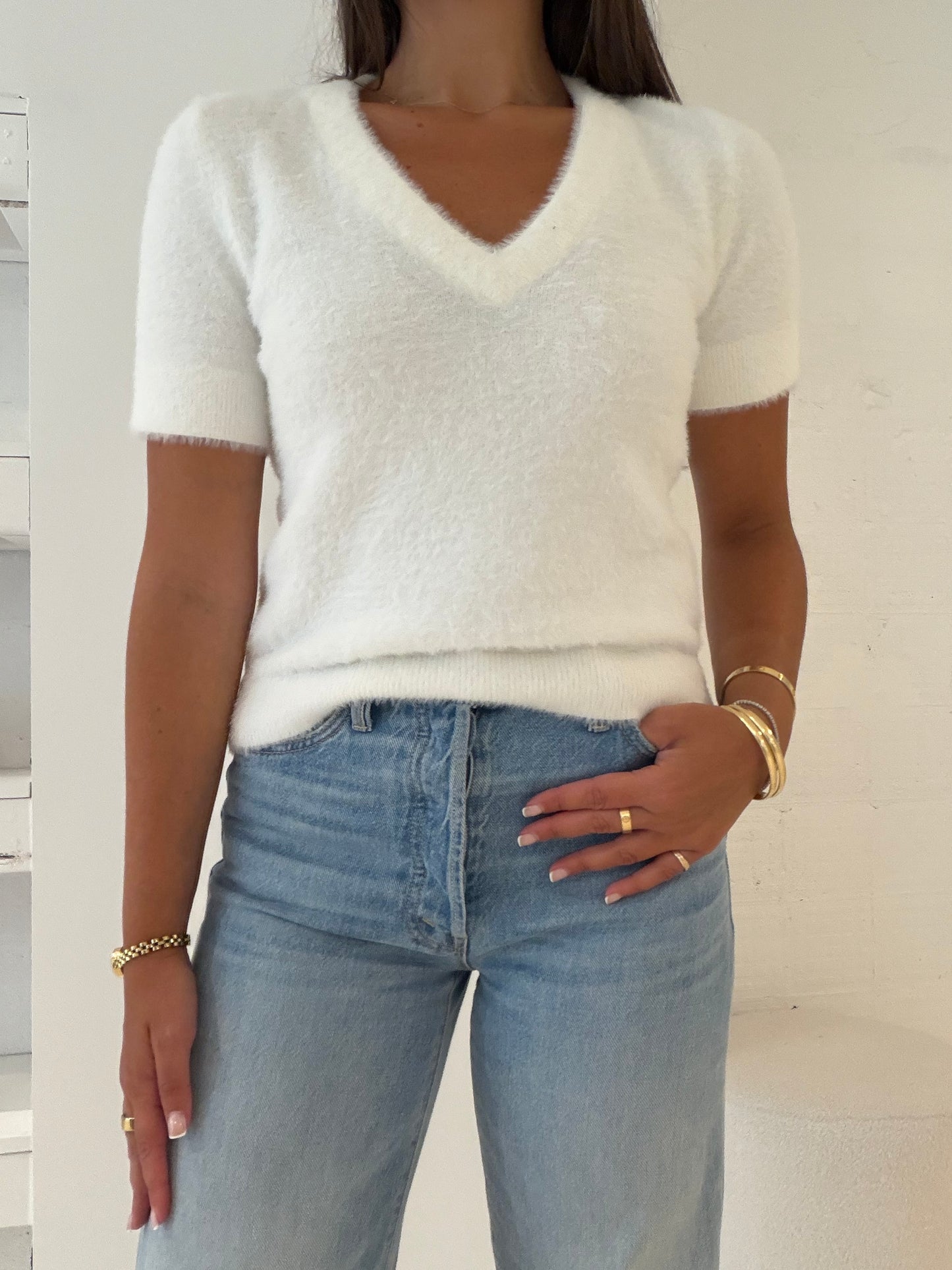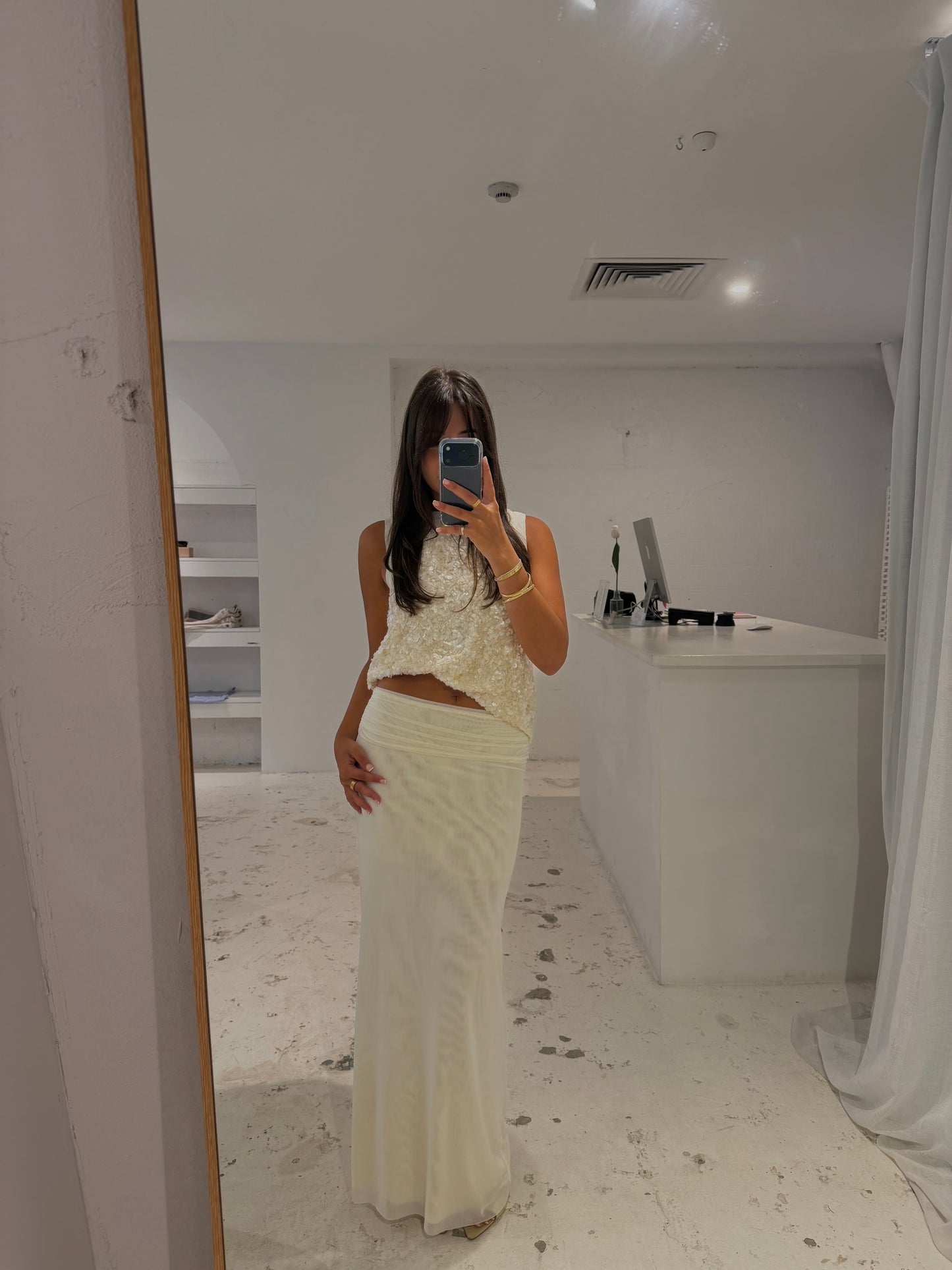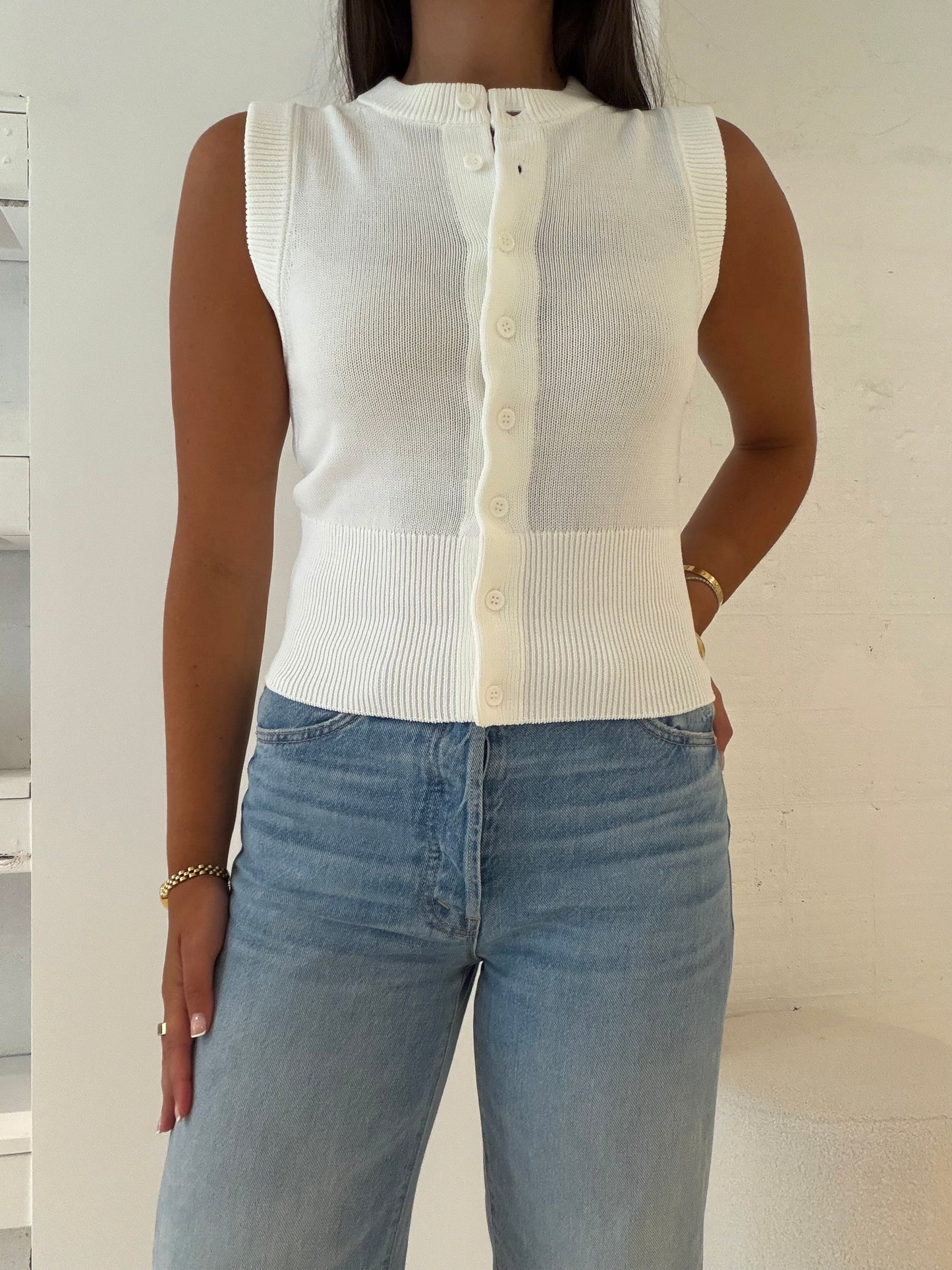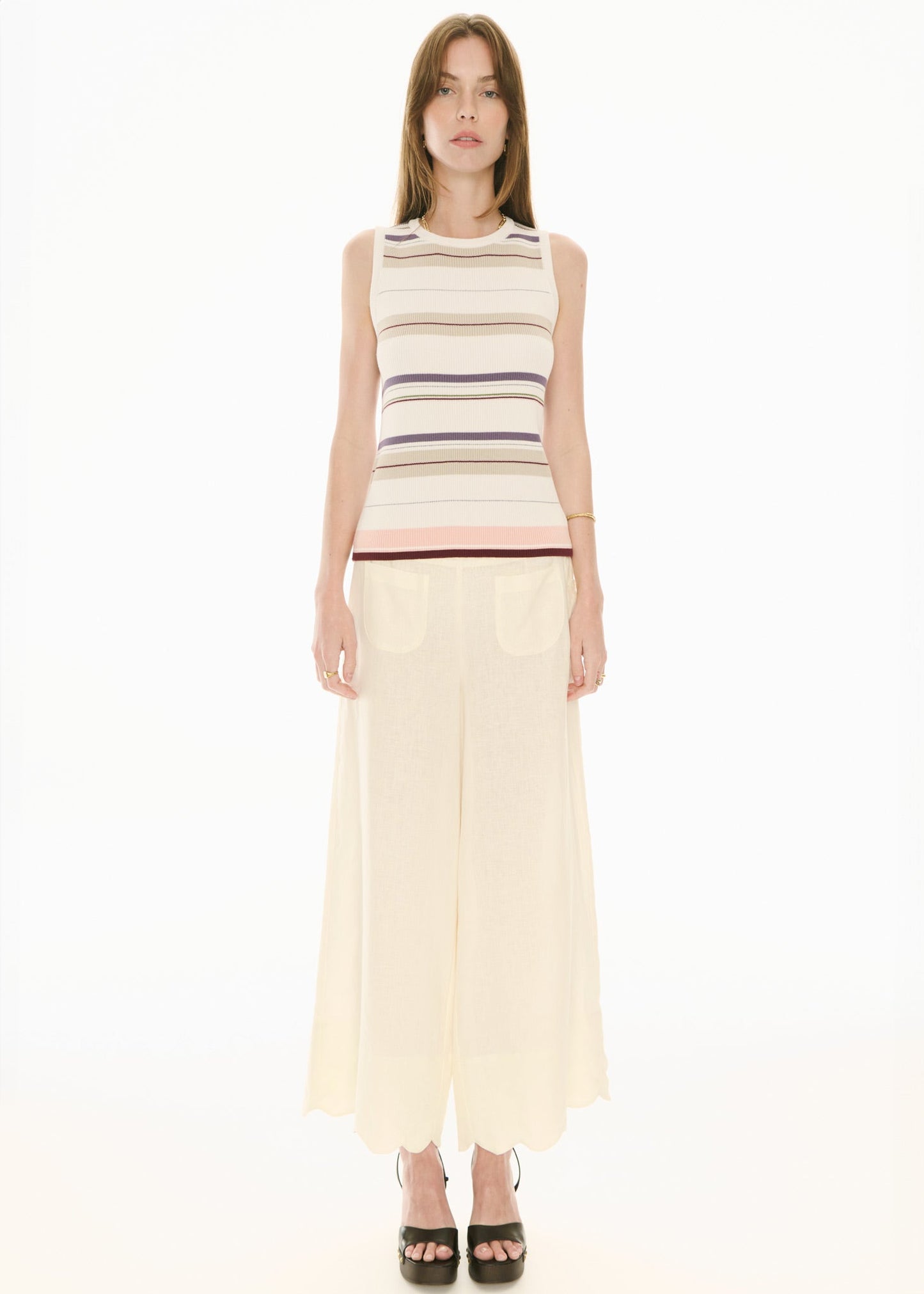 POL Clothing Fey Ribbed Tank Ivory Multi