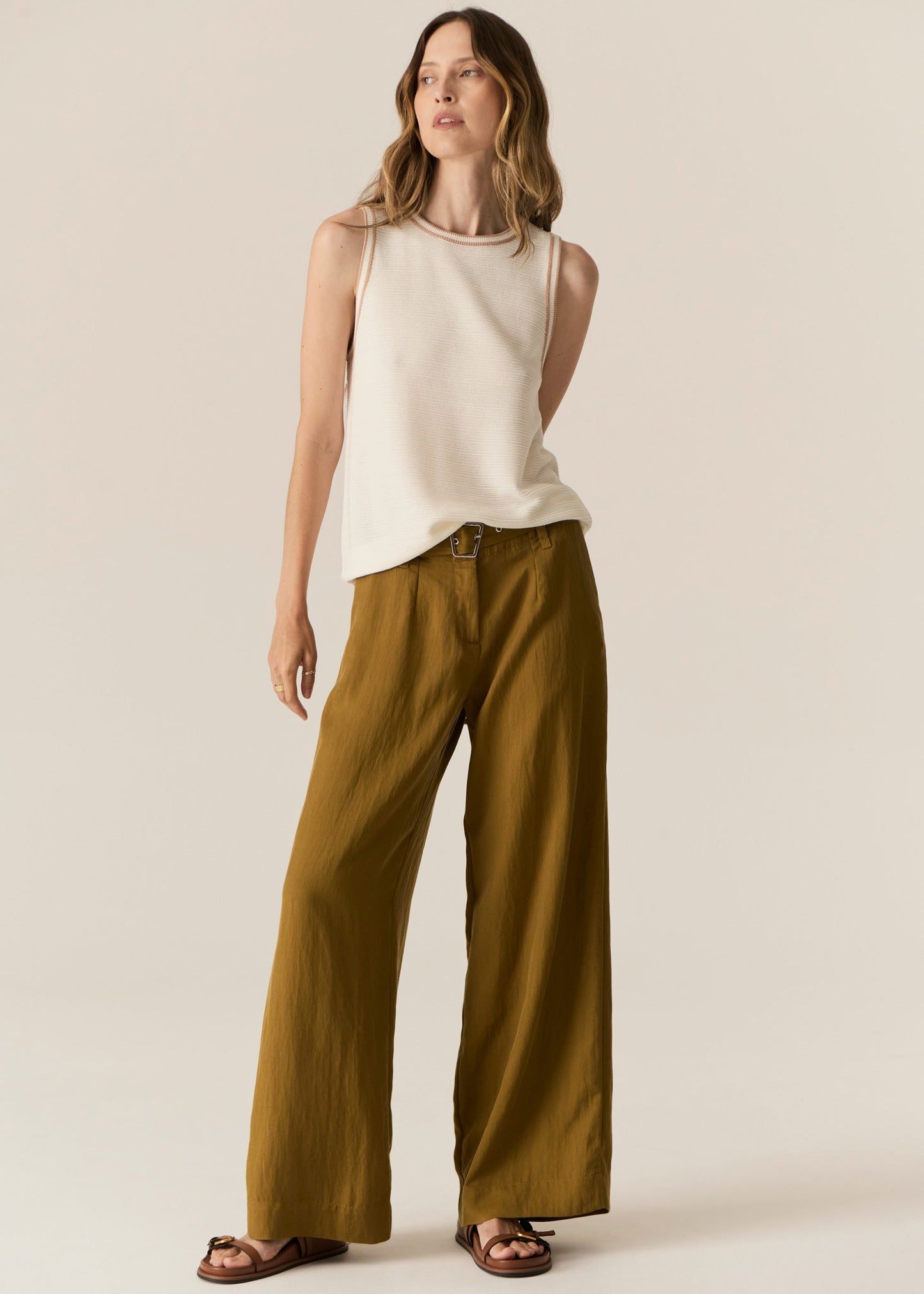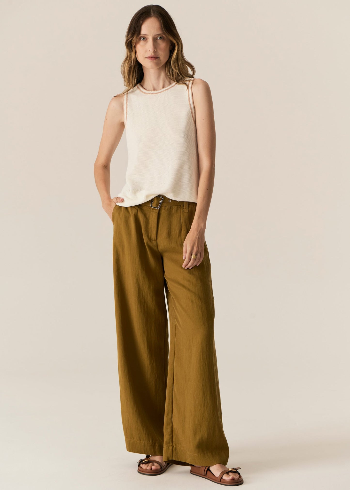 POL Clothing Tedd Knit Tank Ivory /Pink